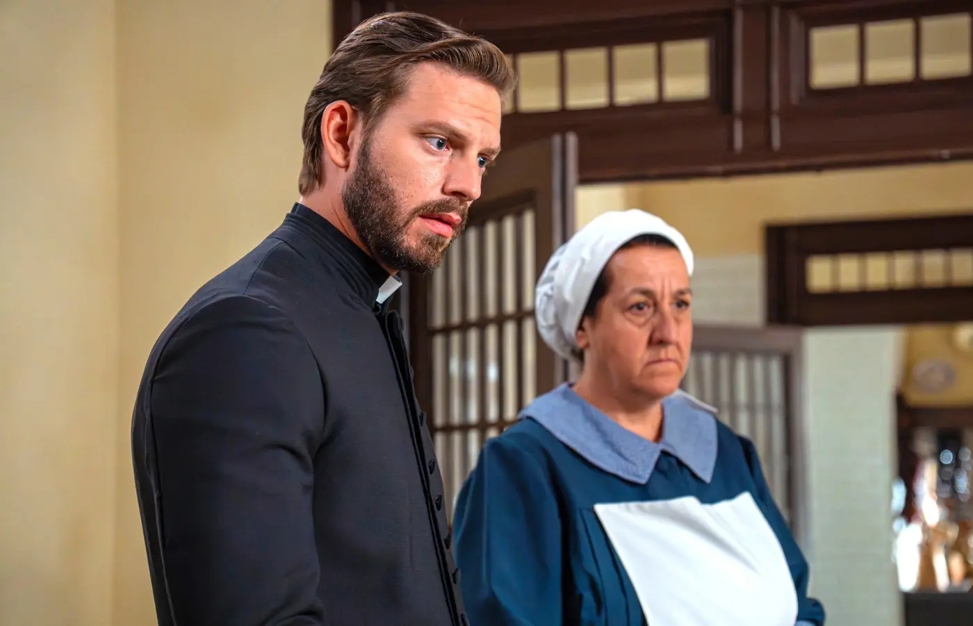 Pero la complejidad de “La Promesa” no se limita a los salones de los señores. Las cocinas y los cuartos de la servidumbre son un hervidero de vidas tan ricas y dolorosas como las de sus patrones. Pía, la ama de llaves, ha sufrido el infierno en la tierra a manos de Gregorio, su marido y padre de su hijo, en un matrimonio forzado y abusivo. Su fortaleza y la sororidad que encuentra en sus compañeras, especialmente en Jana, son un faro de esperanza en la oscuridad.